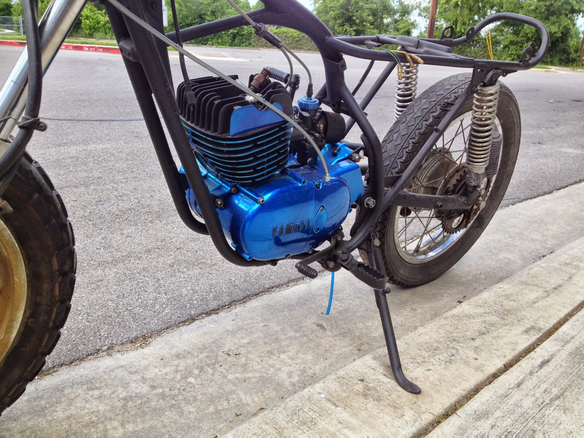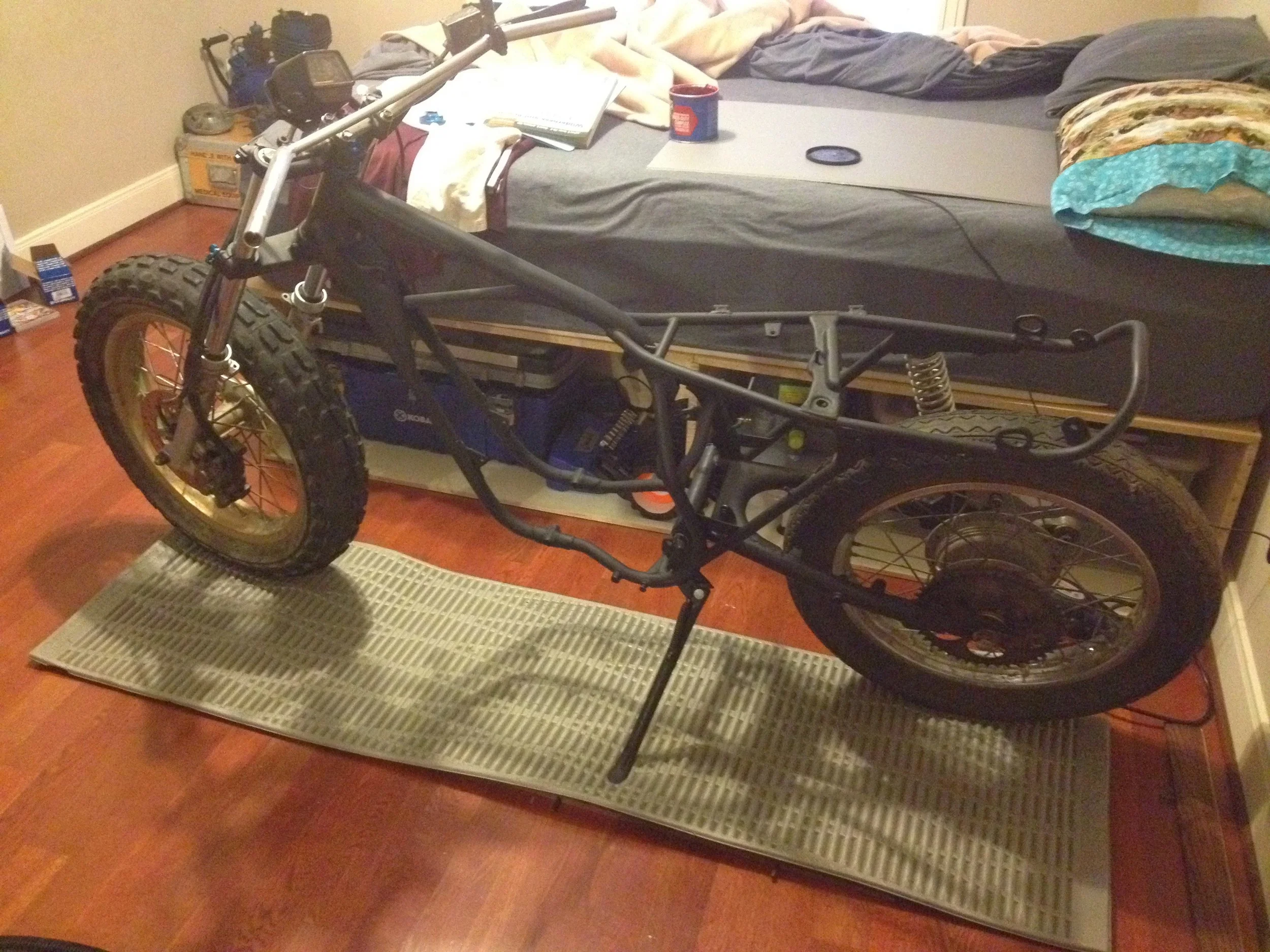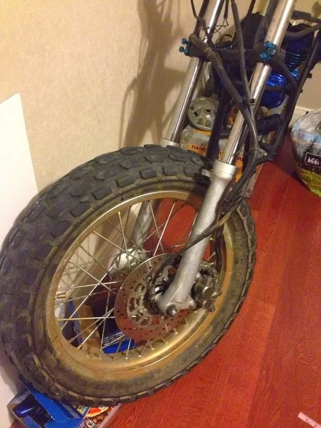 I tried bolting a YZ426 to the frame. I tried putting YZ80 forks in the original triples. Finally i settled on doing what I originally wanted to do- Bolt a TW200 front end on.