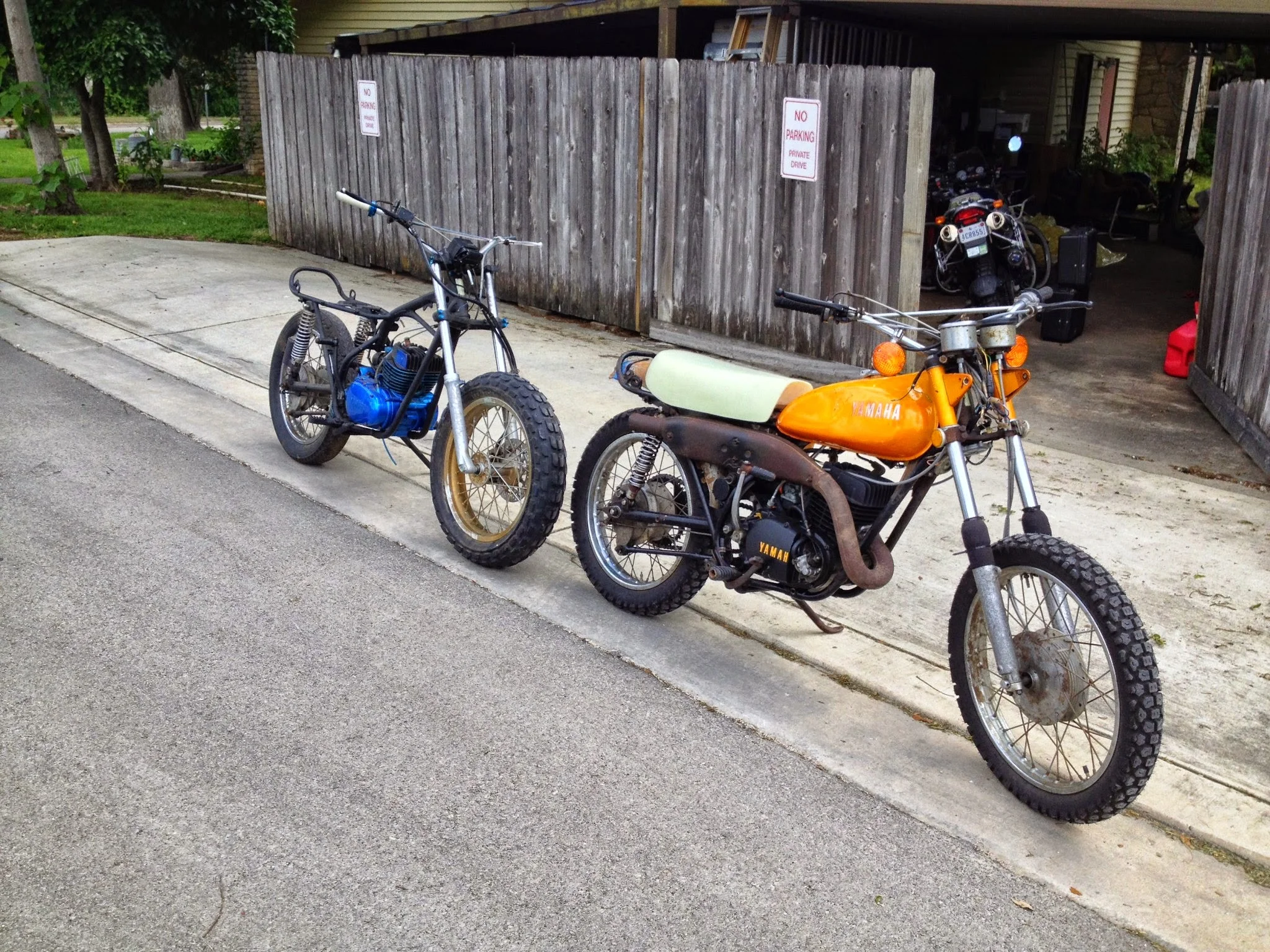 It still needs a lot. Need a proper tank. Need to make a mold of the seat pan and get a seat made. Need to fix that oil pump (seal is in the mail) Need to tighten up the steering head bearings. Need an air filter. Need to fix a broken bolt in the footpeg mount. Need rear shoes. Need a new chain.